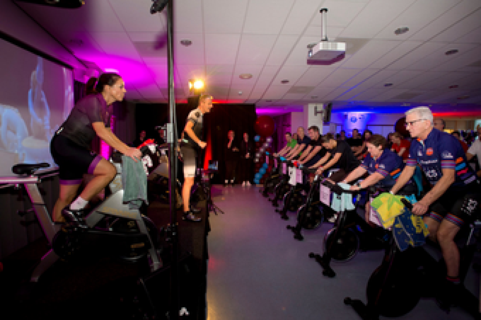 Doe mee! Stel een team samen van maximaal 4 personen en fiets op 28 februari mee. Voor €250 per team krijgt u één van de 40 beschikbare Spinning®-fietsen. Van 10.00 tot 16.00 uur begeleiden professionele instructeurs u door een dag vol energie, muziek en teamspirit. Na afloop proosten we samen tijdens de borrel en maken we het eindbedrag bekend.